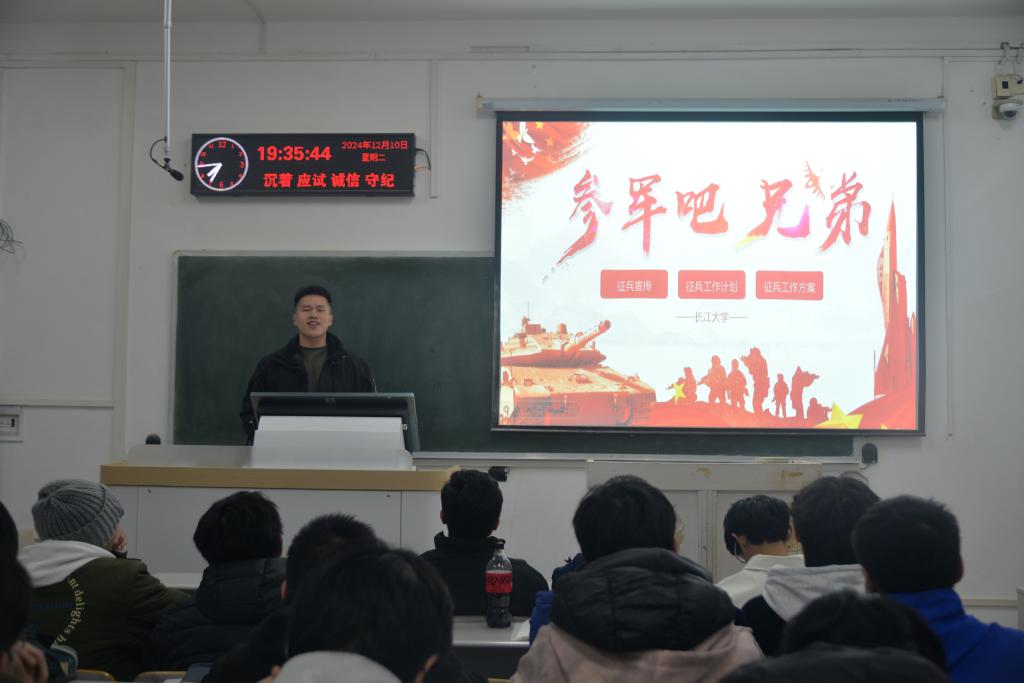 (通讯员 吴泓萱 吴静宜)征兵宣传进校园,点燃学子参军梦。12月10日晚7点,188BET金宝搏官网组织学生开展2025年春季征兵宣讲会。学校征兵宣讲员高依恒、郑一成主讲,188BET金宝搏官网征兵专干林香亮主持活动。